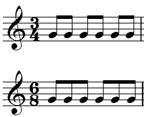 6/8 time has the exact same number of eighth notes as does 3/4 time. So what’s the difference between them? Here meter becomes very important as the way we group these six equal eighth notes together makes all the difference.