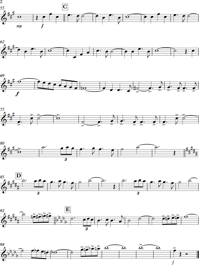 Carefully scan the next example. There is a lot of everything: accidentals, key changes, patterns, sequences, scales, dynamics etc.