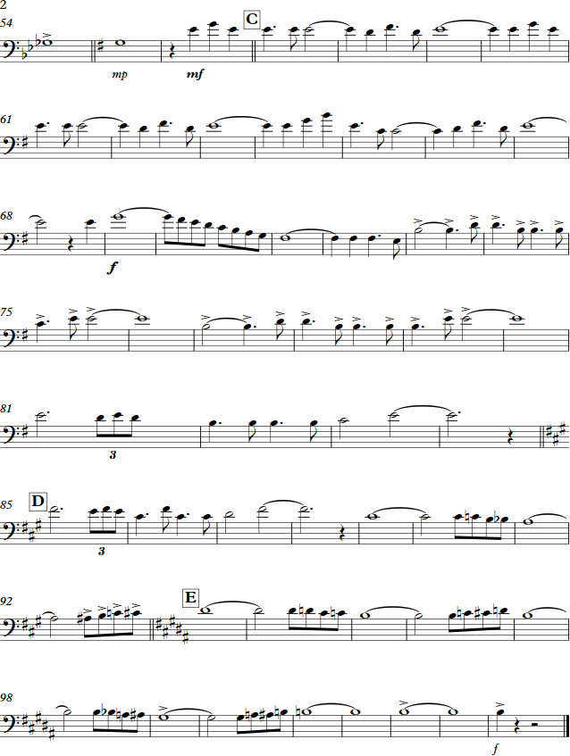 Carefully scan the next example. There is a lot of everything: accidentals, key changes, patterns, sequences, scales, dynamics etc.