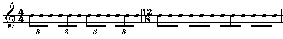 Time signature 12/8 contains measures that have 12 eighth-note beats.